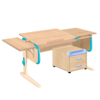 Парта Дэми СУТ-25-03К 120 см раздельная с тумбой и приставкой клен/синий/бежевый с тумбой ТСН-01-01